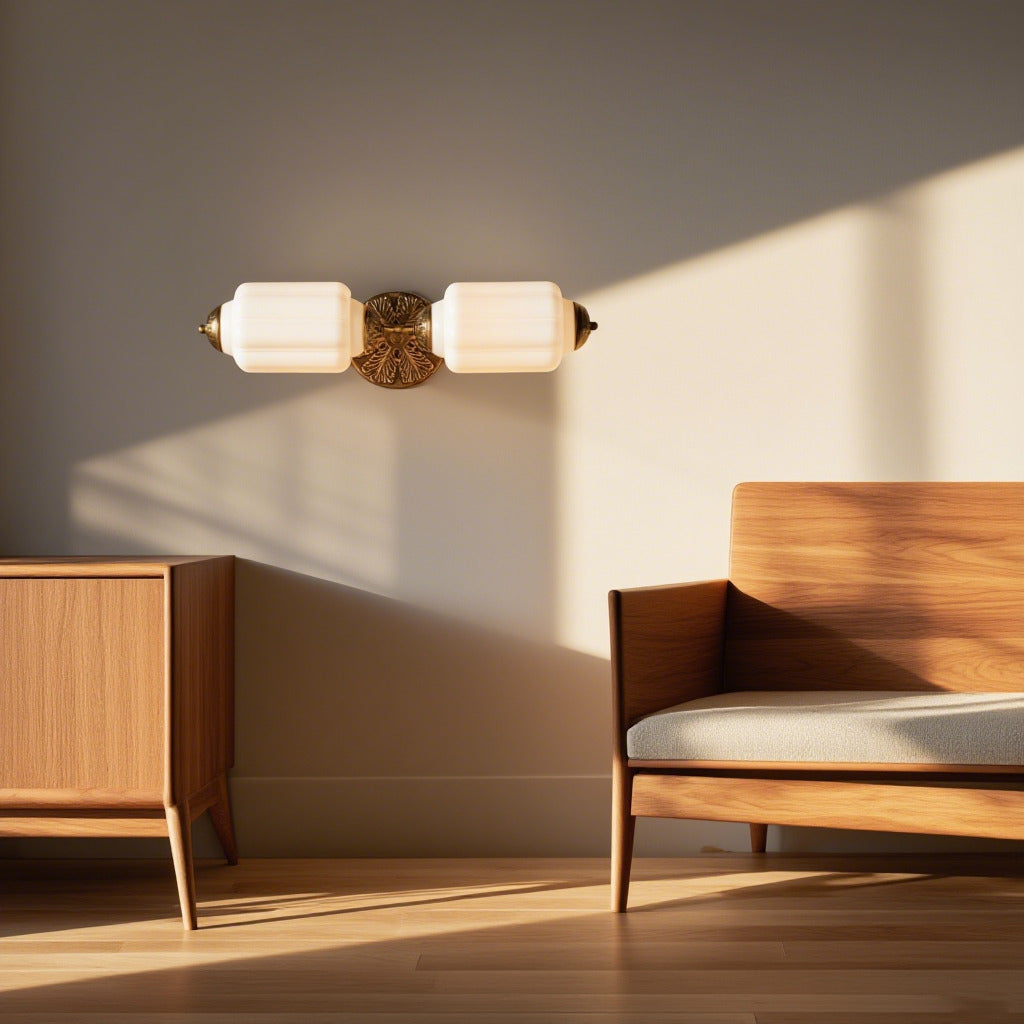 - Finishes: Milk glass; plated metal with oiled bronze finish